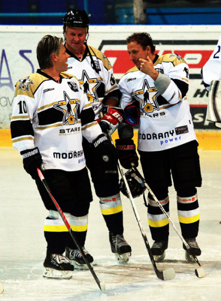 A veru bolo sa na čo pozerať. V „domácich“ dresoch, ktoré mal pod kapitánskym palcom Ľubomír Vaic korčuľovali borci, ktorí sa budú snažiť prinavrátiť zašlú spišskonovoveskú hokejovú slávu a podľa mien by to vôbec nemuselo byť márne. Veď v modro – žltých farbách okrem Vaica predvádzali svoje zručnosti i Rišo Smotrilla, Jožo Hrubý, Paľo Gurčík, či Mišo Findura, doplnení mladými spišskými puškami. No i na druhej strane korčuľovala hokejová kvalita. Staršiu generáciu spišských odchovancov reprezentovali Peťo Krajňak, Peťo Filip, či Ľudomil Ondov, nechýbali ani opory bratislavského Slovana Libor Hudáček, Mišo Sersen, či Maťo Bakoš a zostavu odchovancov doplnili i také mená ako Miroslav Lažo, či víťaz Stanleyho pohára z roku 2004, vtedajší blesk z Tampy Bay, Martin Cibák. Zápas plný hokejových kúskov s poriadnou dávkou exhibície skončil „nečakane“ 12 : 12 a na nájazdy zvíťazili napokon domáci 2 : 0. Ale o výsledok určite nešlo. „Som nadšený touto akciou celé to vypálilo parádne. Oslovil ma nový riaditeľ klubu Miro Gavalier, či by som neprišiel podporiť dobrú vec, nezaváhal som a vôbec to neľutujem. Je to akcia, ktorá tu chýbala a ktoré treba robiť. Veľmi som sa bavil a verím, že sme ukázali niečo i našim fanúšikom,“ vyrozprával svoje prvé dojmy v mixzóne poriadne upotený „veterán“ HK SNV Peter Krajňák. Bývalý skvelý krídelník vytvoril s Peťom Filipom, tak ako za mladých čias, smrtiaci útok odchovancov, sám strelil tri góly a ukázal, že zo svojho hokejového umu nestratil takmer nič. A ako vidí snahu o oživenie hokeja na Spiši? „Po dlhšom čase sa v klube pohli ľady a aj táto akcia ukázala, že je tu snaha a ambícia niečo zmeniť. Tento prekrásny štadión, títo výborní fanúšikovia si jednoducho zaslúžia najvyššiu súťaž. A čo k tomu najviac treba? Odpoveď je jednoduchá – peniaze. Spišská Nová Ves by nutne potrebovala generálneho sponzora, aby sa opäť nestalo, že financie vydržia len do Vianoc a potom príde pád. Verím, že to nové vedenie zvládne a že sa na Spiši opäť raz bude hrať extraliga,“ dodal Krajňák.